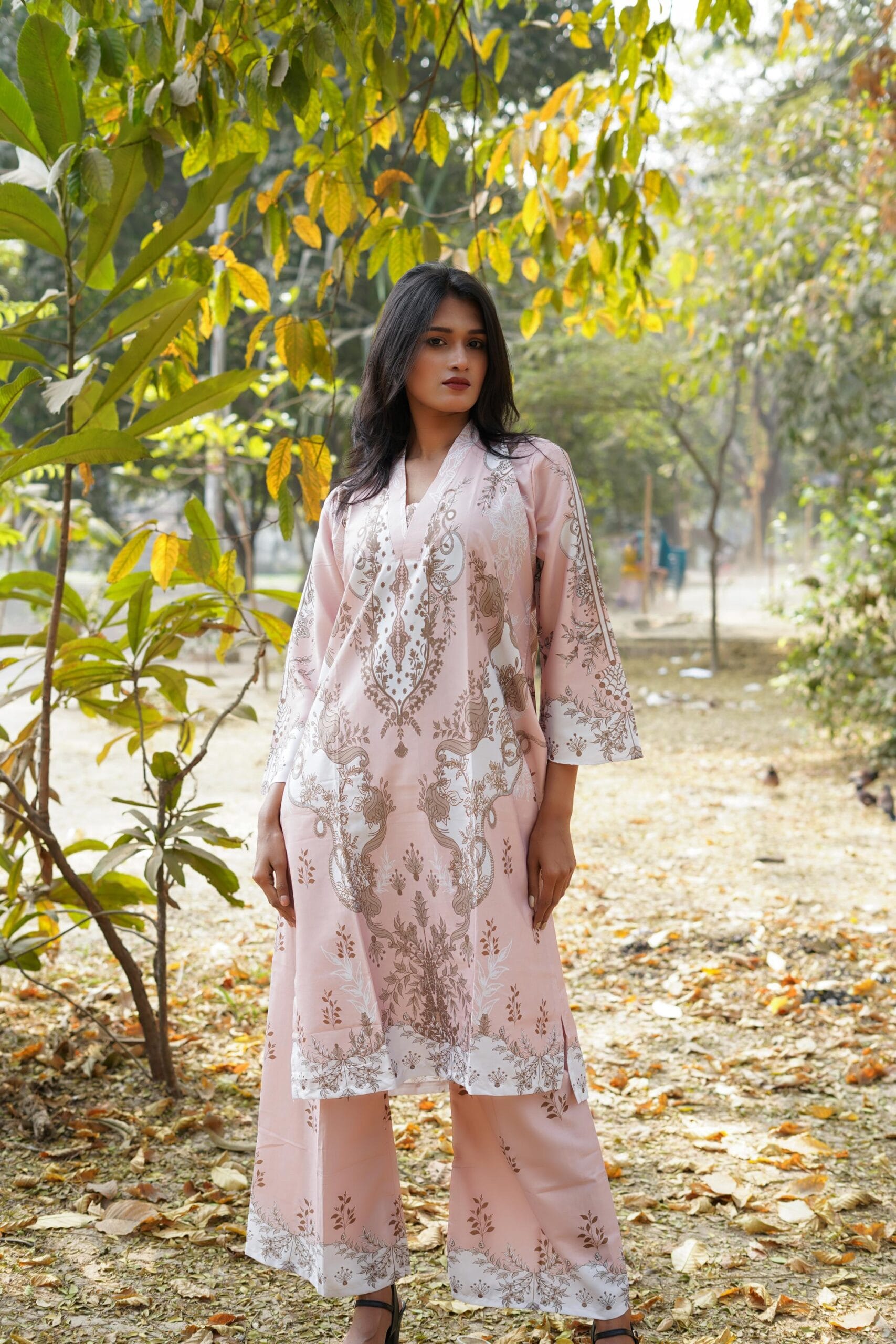 Discover the Blush Pink Damask Print Co-ord Set at Khatuun.store. This elegant two-piece set features a sophisticated floral print and a relaxed, modern fit. Perfect for any occasion. Shop now!